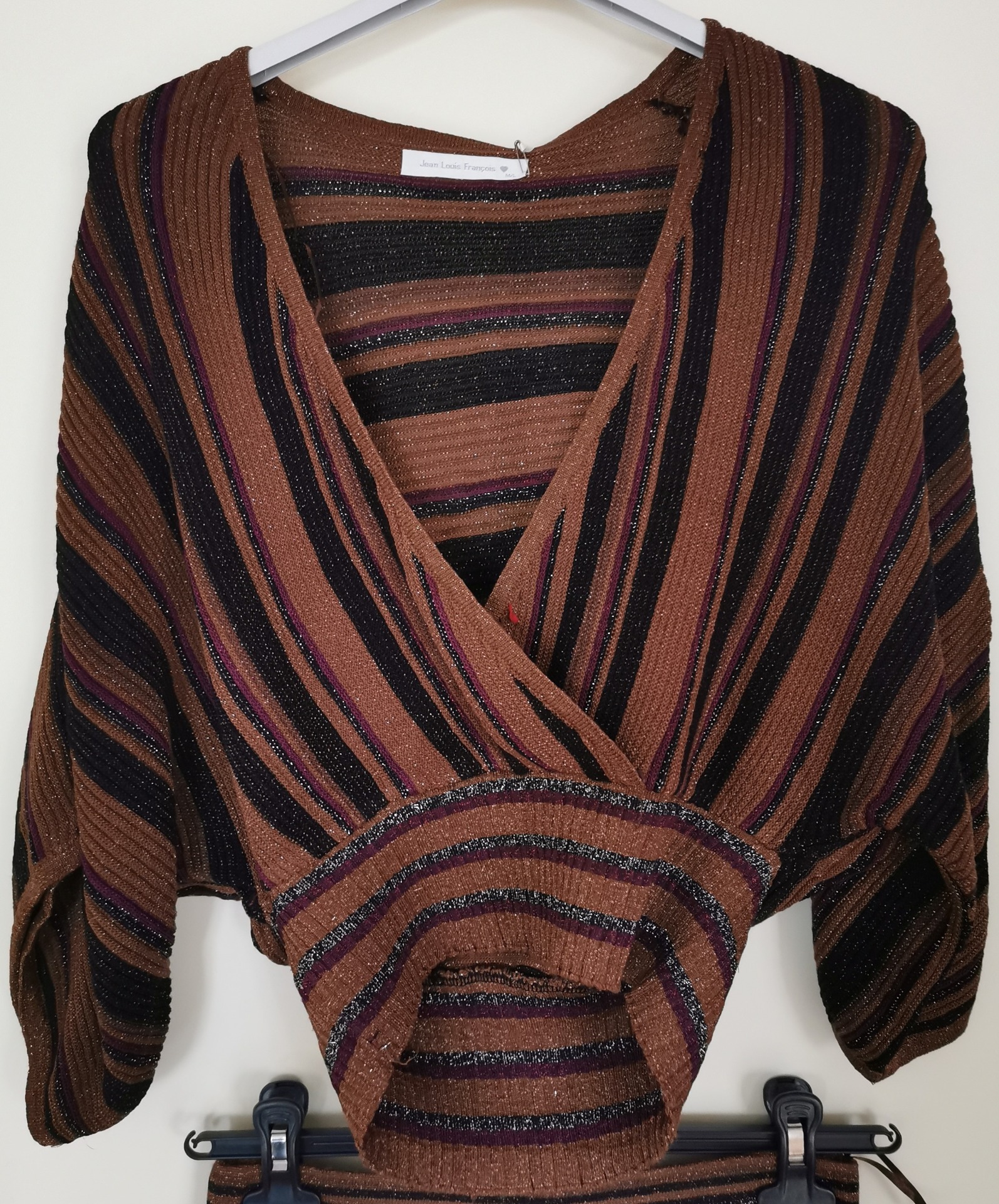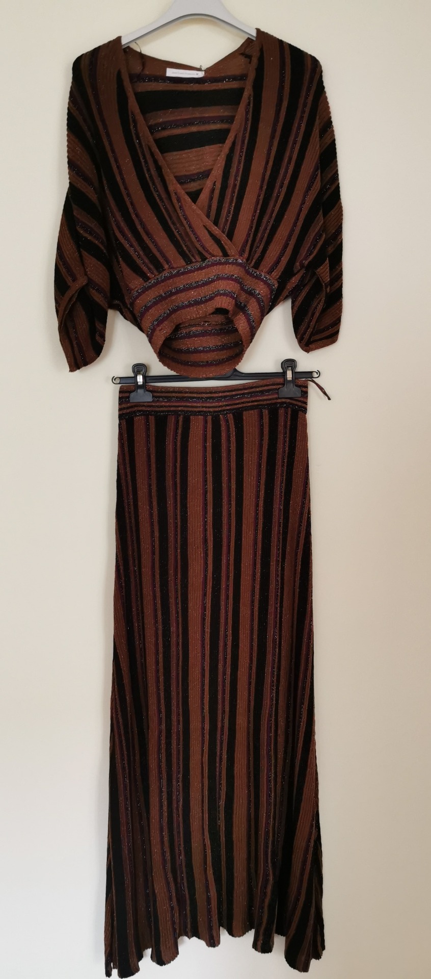 Conjunto de saia e camisola em malha lindíssimo. com efeitos prateados e dourados na malha. Made in Italy.