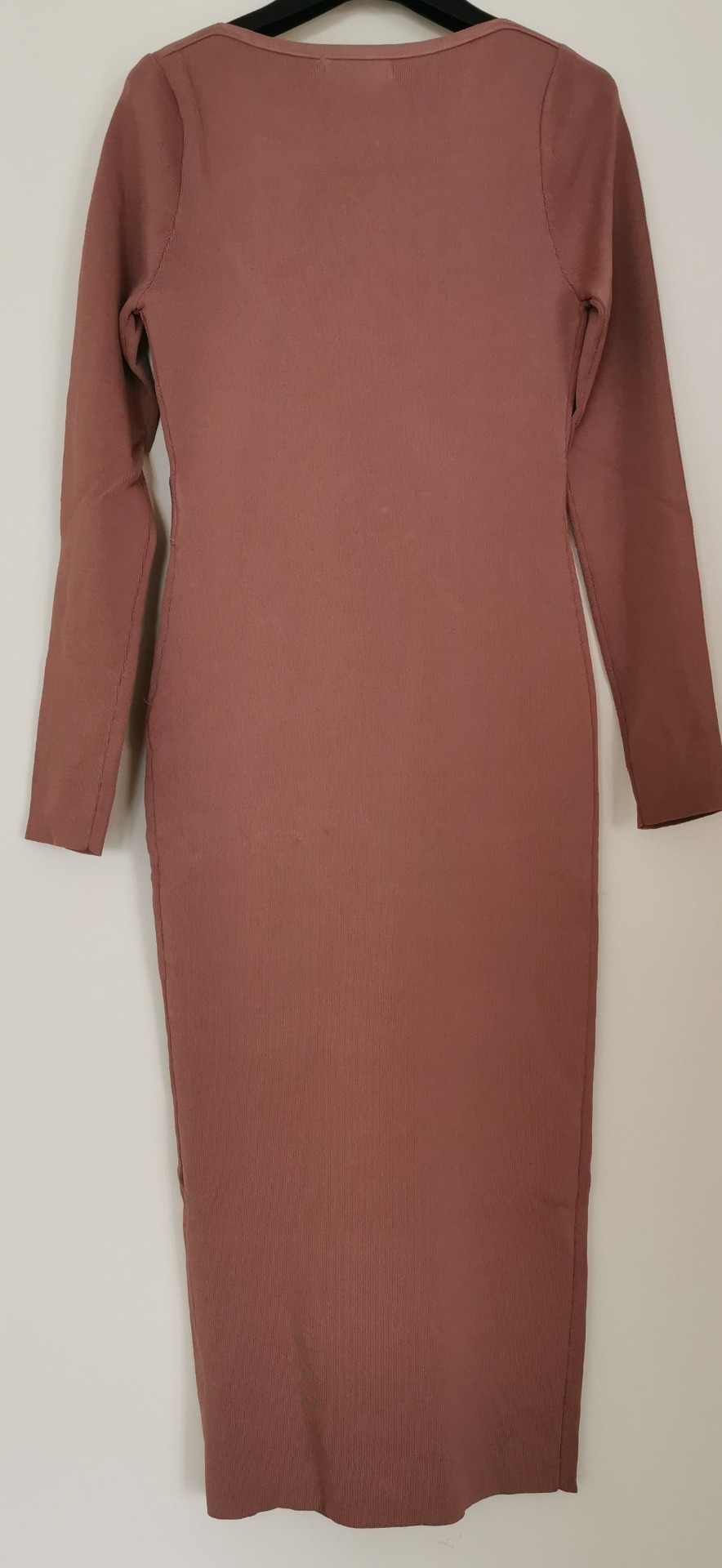 Vestido castanho claro. Elegante de malha, com botões e fivela dourados. Tamanho Único